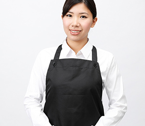 服装はポロシャツにチノパンなどの動きやすい服装が基本です。その上に制服となるロゴ入りエプロンを着用します。(お仕事の性質上、華美なアクセサリーや派手なネイルは不可。)